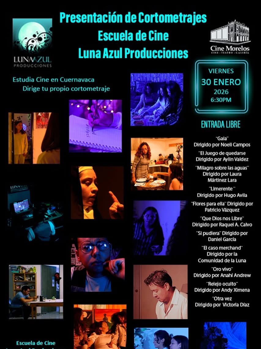 Cine Morelos Av. Morelos 188, centro, CuernavacaLa Escuela de Cine Luna Azul Producciones presenta una muestra de los trabajos creados por...