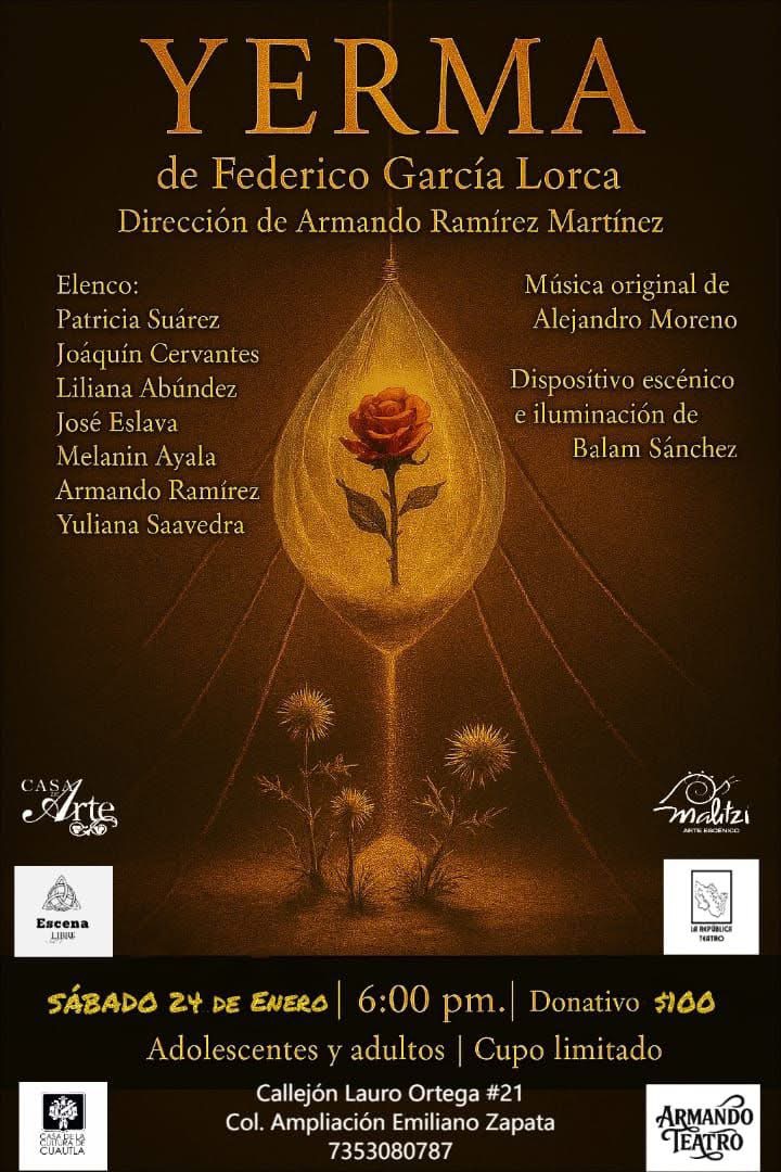 Casa de la Cultura de Cuautla Lauro Ortega 21 Col Ampliación Emiliano Zapata, CuautlaUn clásico del gran dramaturgo Federico García Lorca