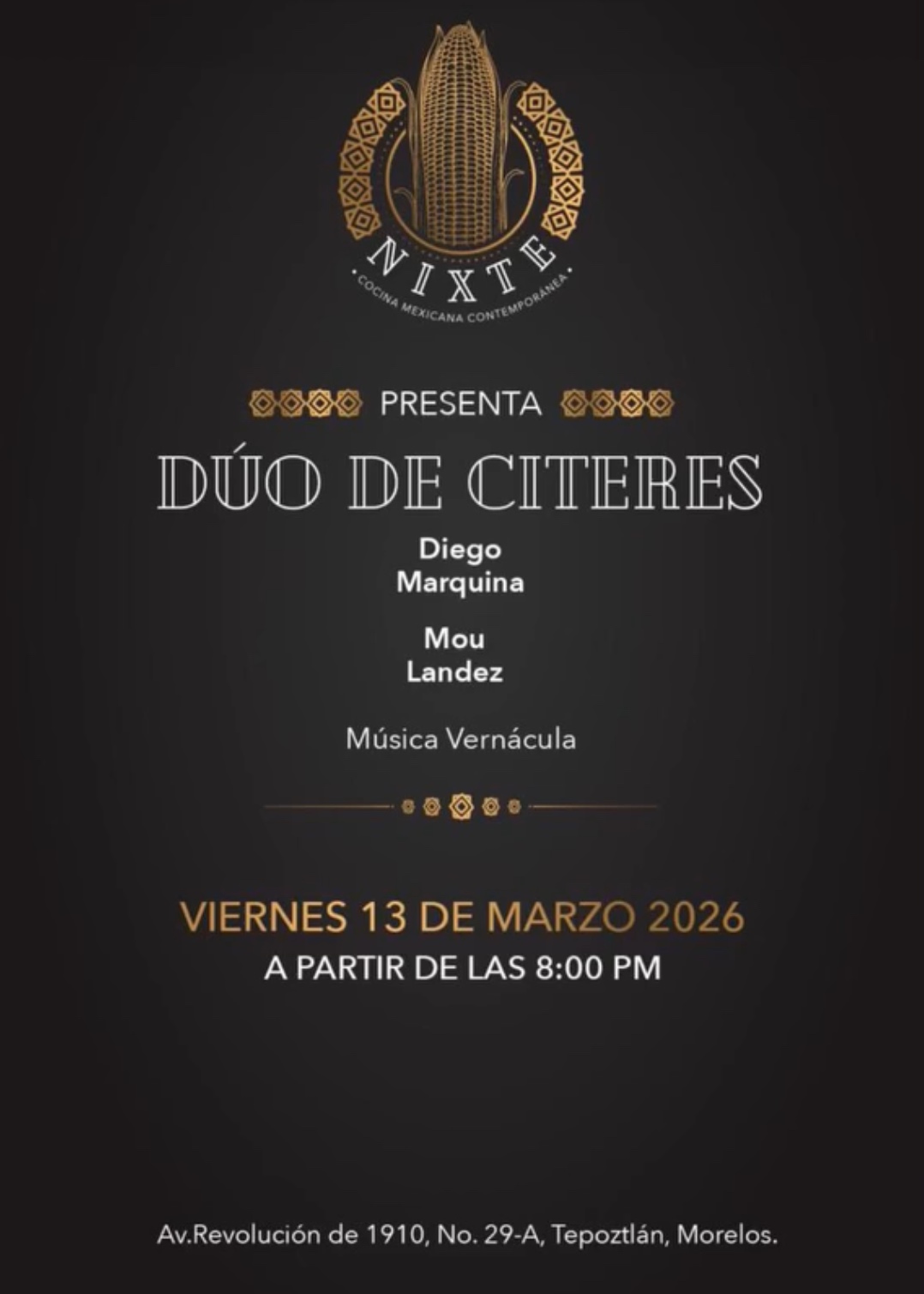 La cita es el viernes 13 de marzo en Nixte Tepoztlán