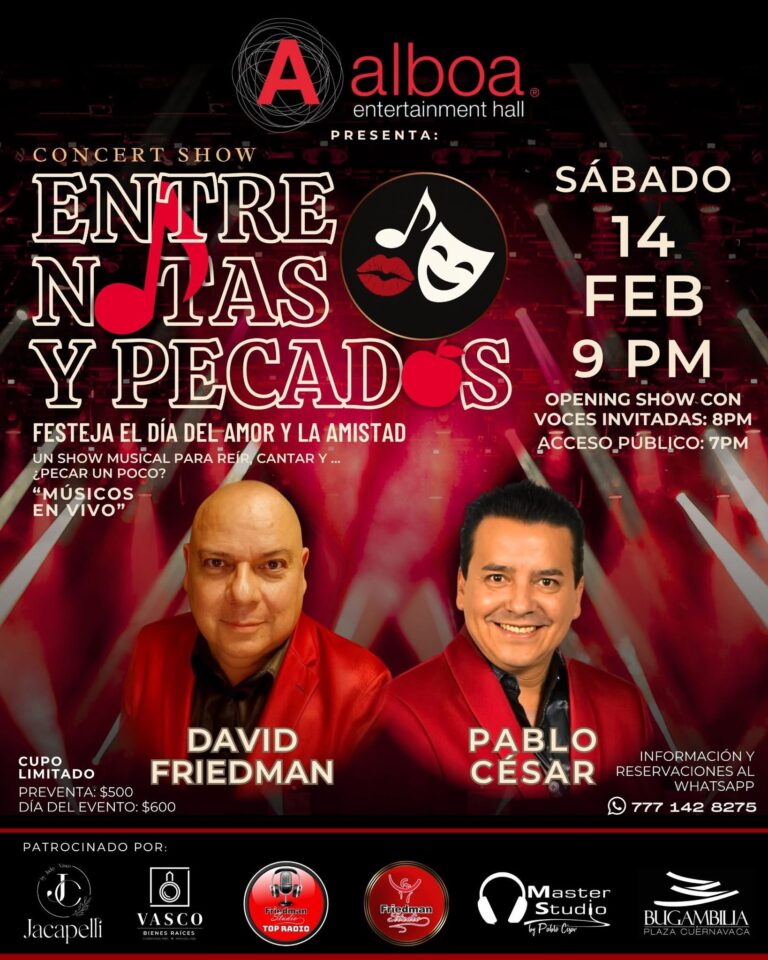 ”Entre Notas y Pecados” , un show musical con las voces de David Friedman y Pablo César para reir, cantar...