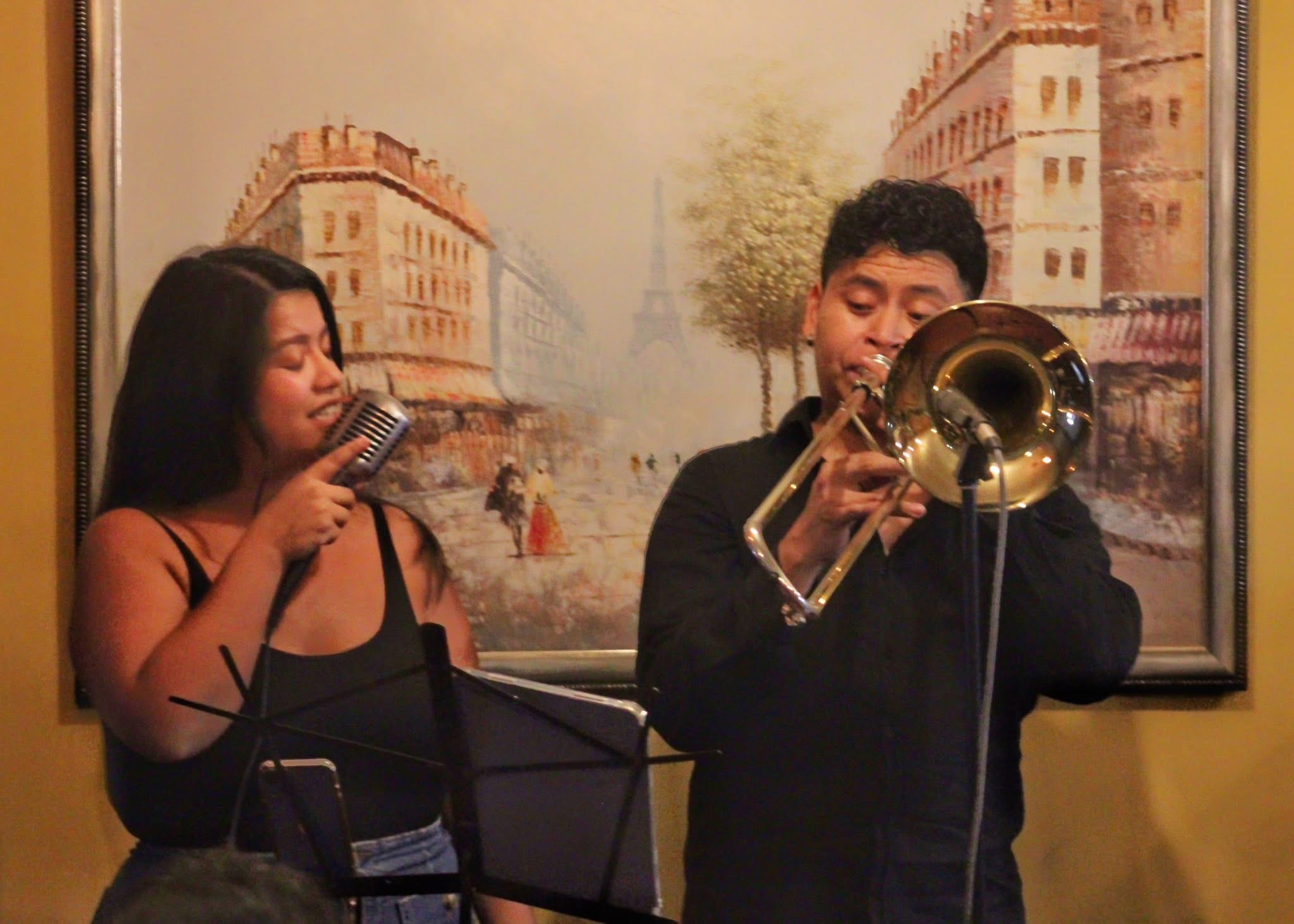 El dueto, integrado por Merari Gómez (voz) y Luis Vargas (trombón) interpretaron una serie de conocidas canciones de distintos géneros con un sonido muy original, sumando la bella voz de Merari con el peculiar sonido del trombón.